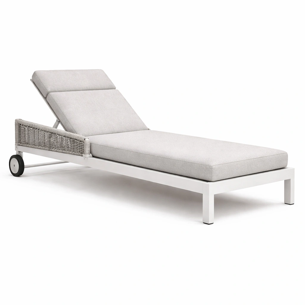 Material: Estructura de aluminio, cojín de poliéster, acabado en ratán sintético.